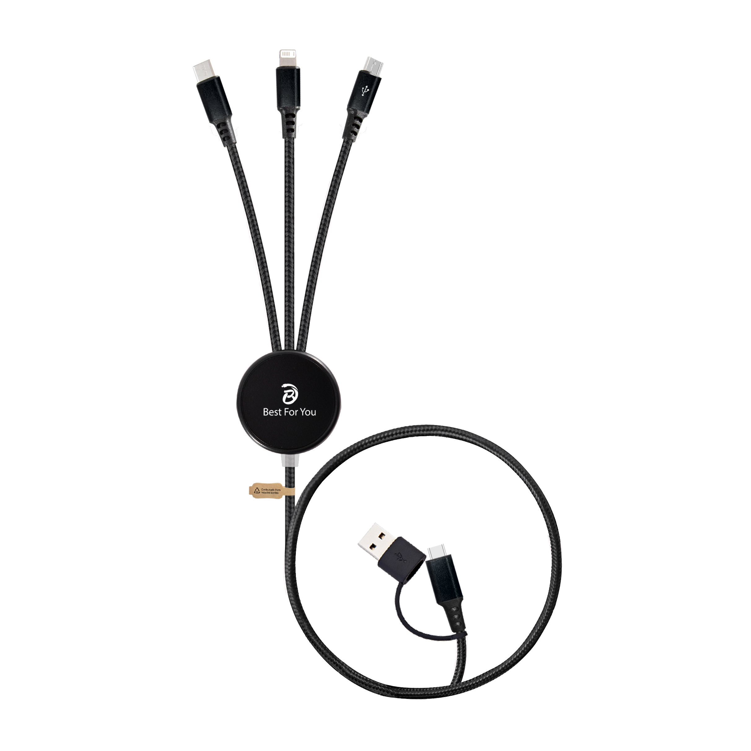 3-in-1 Luminous Charging Cable | Light-Up Logo | 120cm | Eco-Friendly Design | S4121