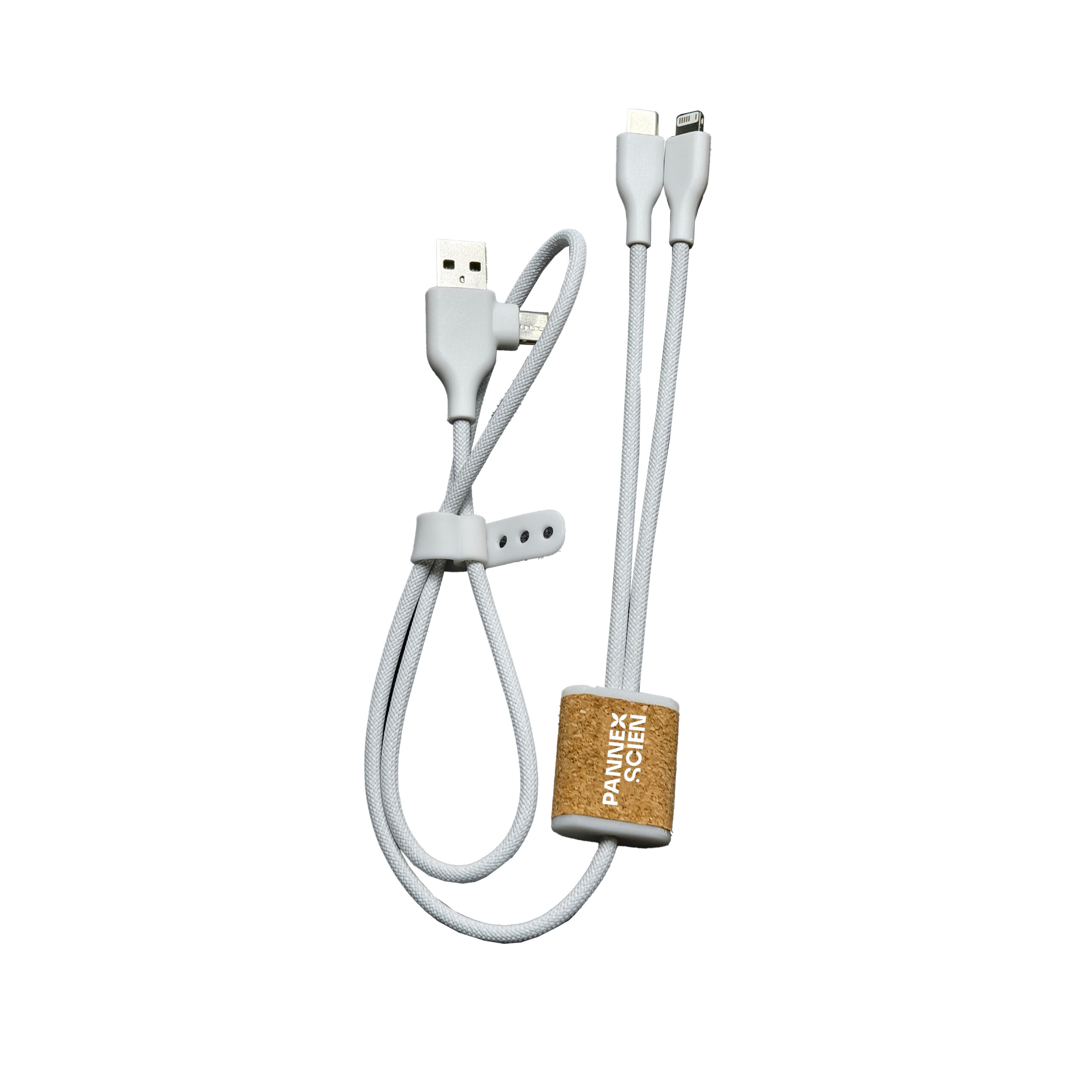 4-in-1 Cork Charging Cable | 70cm | USB-A & USB-C Input | Eco-Friendly | T4070-F10