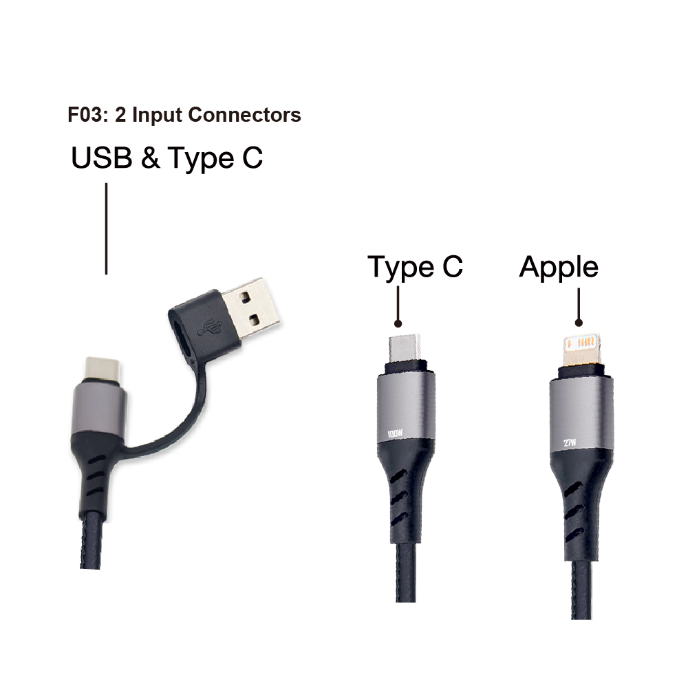 4-in-1 100W Ultra-Fast Charging & Sync Cable | USB-C + Lightning | 120cm T7129PD-F03