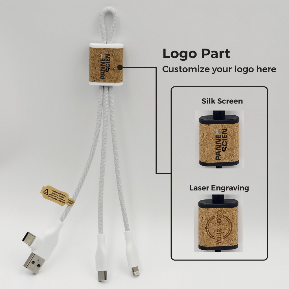 4-in-1 Cork Keychain Charging Cable | Recycled Material | 17cm | TK4000-F10